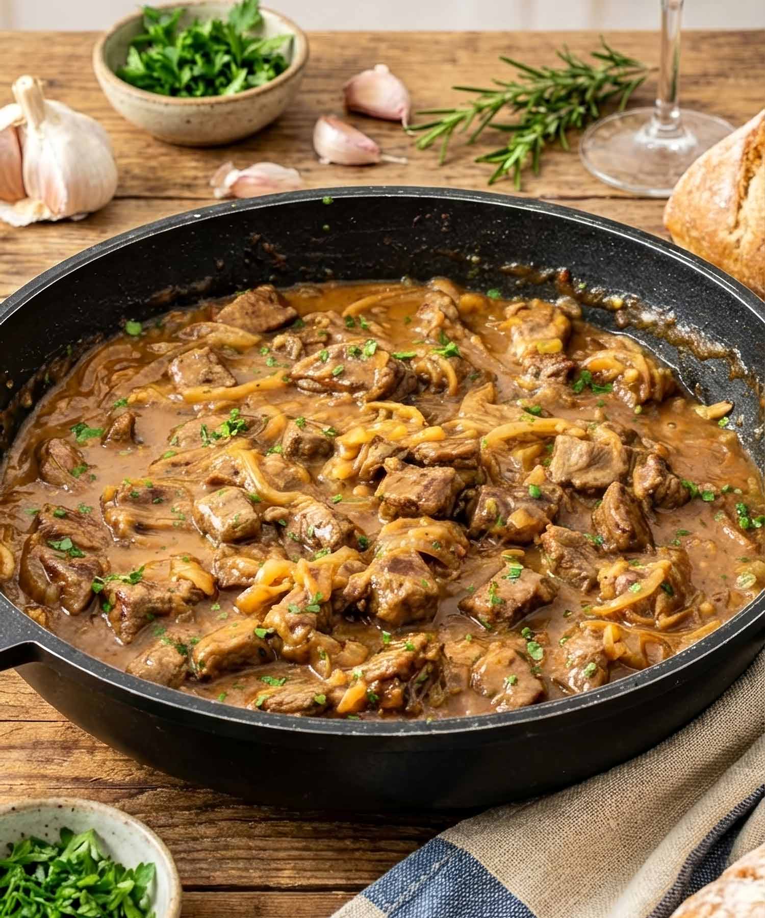Beef and Onion Skillet gives you that rich, slow cooked flavor without committing to hours at the stove. Tender beef, a proper gravy, and onions that actually get the time they need to build real flavor.